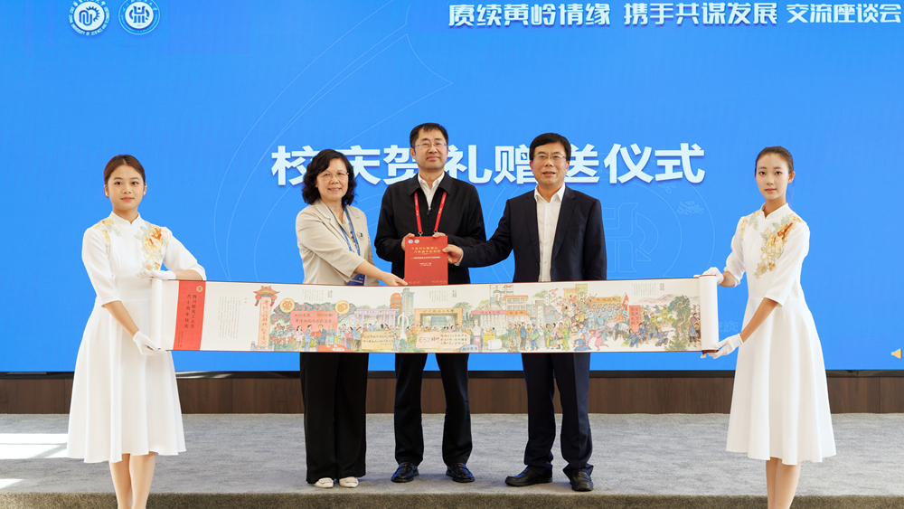 在温馨的互赠礼物环节,蒋传海代表华东理工大学赠送校庆贺礼——由非遗连环画传承人罗希贤先生领衔创作、历时半年精心打造的6.52米长《“652工程”历史长卷》及配套画册;我校则回赠了由学校校友、自贡彩灯非遗传承人万松涛制作的瓷器手工捆扎技艺灯品国宝熊猫。一盏灯,照亮前行路;一份礼,凝聚两校心。它们不仅是两校友谊的象征,更是两校在新征程上携手同行的历史见证。