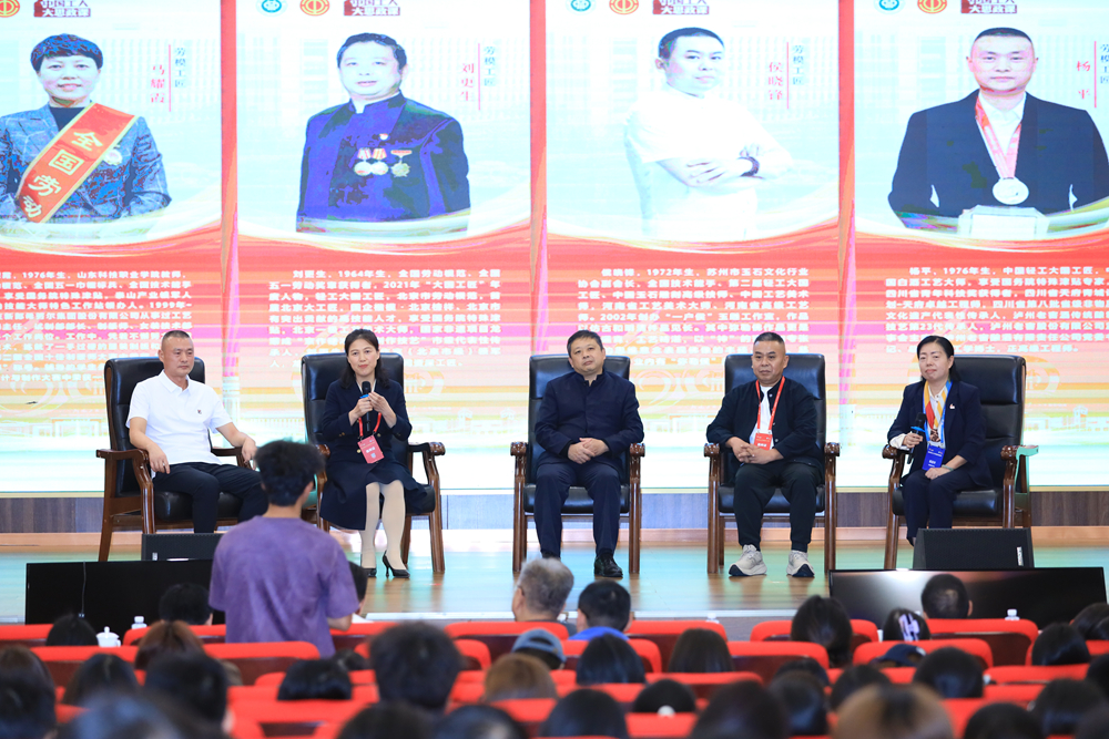 活动邀请到四位行业劳模工匠作报告。全国五一劳动奖章获得者、2021年大国工匠年度人物、首届轻工大国工匠刘更生,作为多项荣誉获得者,展现了“精益求精、追求极致”的工匠本色;全国技术能手、第二届轻工大国工匠、中国玉石雕刻大师侯晓峰,诠释了“守正创新”的时代内涵;新郎希努尔集团股份有限公司制版师、高级技师、全国劳动模范马耀霞,分享了从基层成长为全国劳动模范的励志历程;泸州老窖股份有限公司监事会主席、中国酒业大国工匠、第二届轻工大国工匠、中国白酒工艺大师杨平,让大家领略到中国传统酒文化的博大精深。