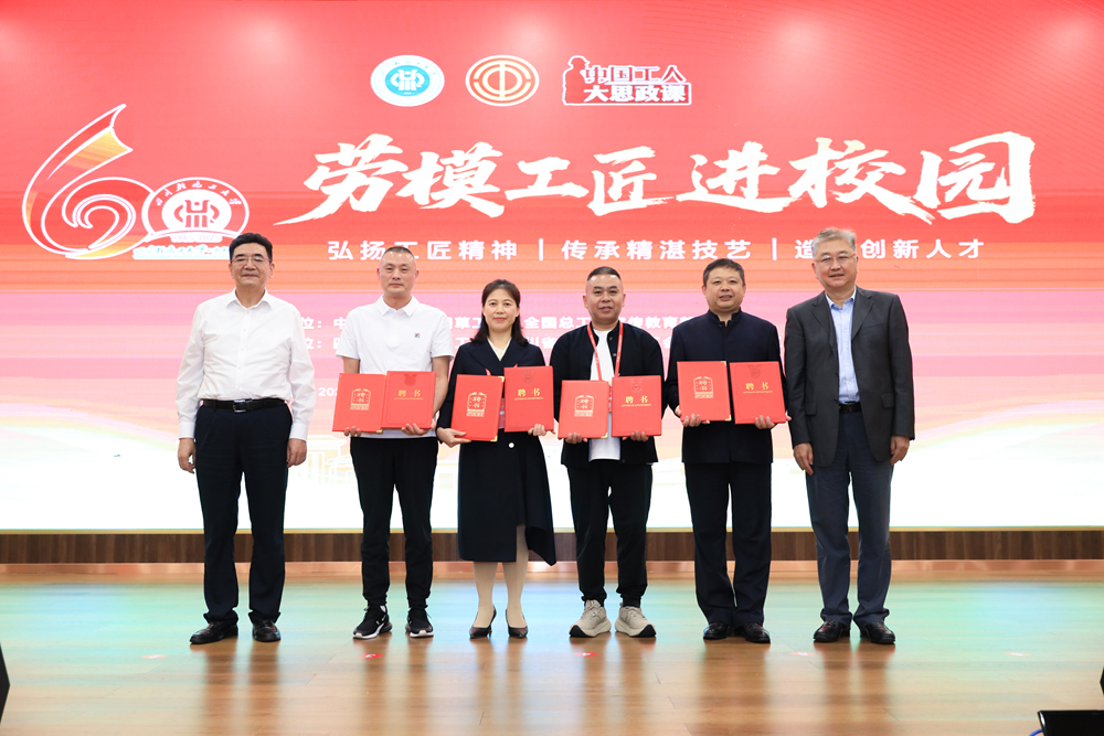 报告结束后进入交流互动环节,同学们积极提问,工匠大师耐心解答,现场气氛热烈。为让工匠精神更好融入人才培养,学校聘请四位大国工匠担任“客座教授”,并举行“中国工人大思政课”劳模工匠宣讲团成员聘任仪式,后续将通过课程讲授、实践指导等方式,为同学们搭建更优质的成长平台。王双清巡视员等领导为工匠大师颁发聘书。