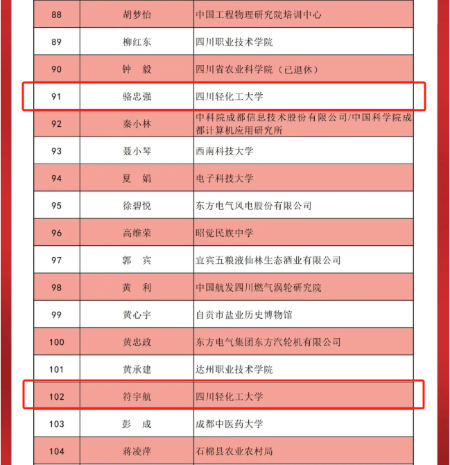 为深入贯彻落实党的二十大关于弘扬科学家精神的部署要求,充分发挥优秀科技工作者的榜样示范作用,四川省科协联合省委军民融合办、教育厅、科技厅、中国科学院成都分院、省社科院等多家单位共同组织成立了四川省弘扬科学家精神宣讲团。我校化学与环境工程学院副院长符宇航教授和自动化与信息工程学院骆忠强教授入选首批宣讲团成员。