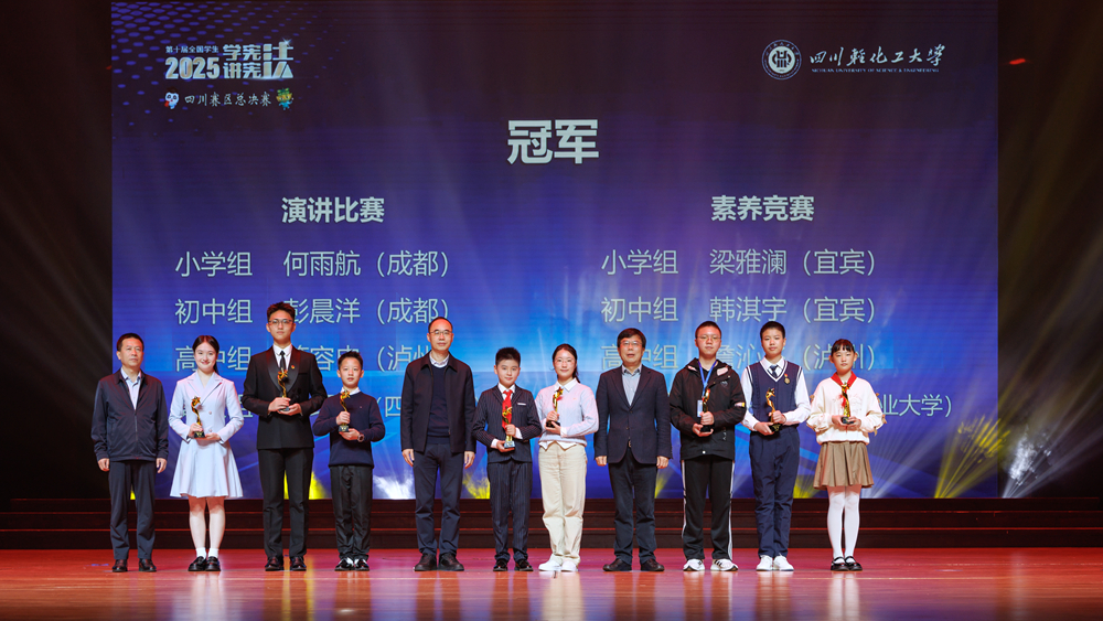 颁奖典礼上,来自四川大学的彭红稀作为冠军获得者代表进行了演讲展示。大家还一同欣赏了我校推选的舞蹈《马铃摇响幸福歌》、自贡市自流井区塘坎上小学推选的节目《盐都好少年》以及我校与自贡市江姐中学、自贡市大安区广华山小学一同带来的大合唱《宪法伴我们成长》。