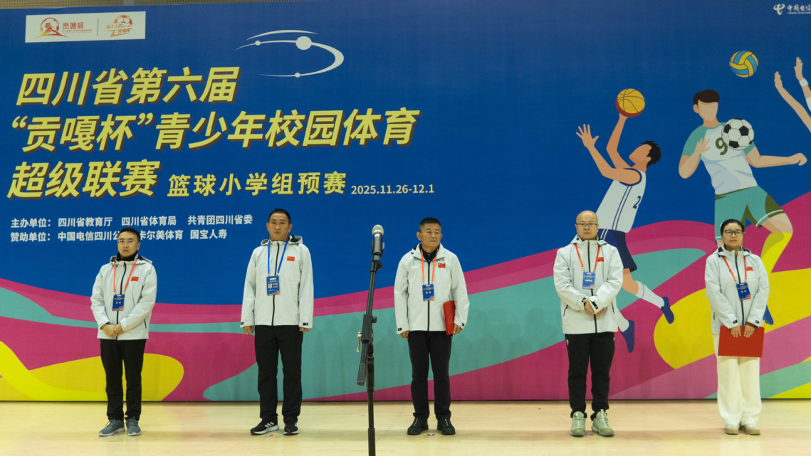 11月27日上午,四川省第六届“贡嘎杯”青少年校园体育超级联赛篮球小学组预赛开赛仪式在我校李白河校区举行。本次赛事由四川省教育厅、四川省体育局、共青团四川省委联合主办,自贡市教育和体育局、大安区人民政府承办,来自全省42支小学篮球劲旅、500余名运动员齐聚,将在为期5天的赛程中展开巅峰对决。
