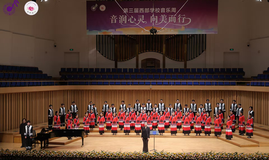 舞台上,他们以《忆秦娥·娄山关》的磅礴气魄震撼人心,又以《撒里啰》的灵动欢腾展现民族魅力。舞台下,这支成立于2015年、拥有百余人的团队,早已不仅是艺术的追求者,更成为学校美育的践行者和校地艺术合作的活跃纽带。
