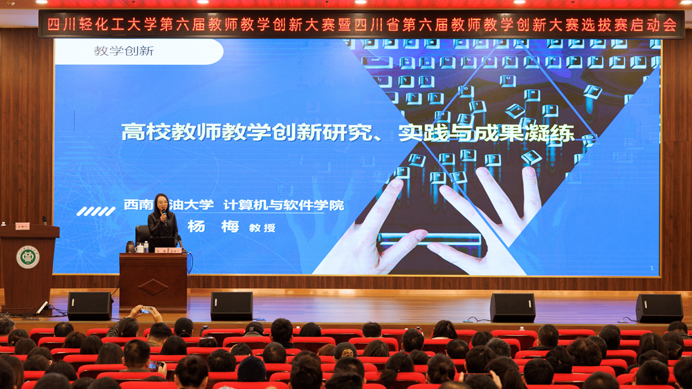 为深入推进学校教育教学改革,激发教师教学创新活力,提升人才培养质量,12月5日,万象城平台第六届教师教学创新大赛启动仪式暨教创赛专题培训在李白河校区行政中心学术报告厅举行。学校党委常委、副校长胡光忠,教创赛国赛专家杨梅教授,校工会、人事处、教务处负责人,各学院教学副院长、全体拟参赛选手及新进青年教师代表参加,全校其他教师通过校内直播同步观看。
