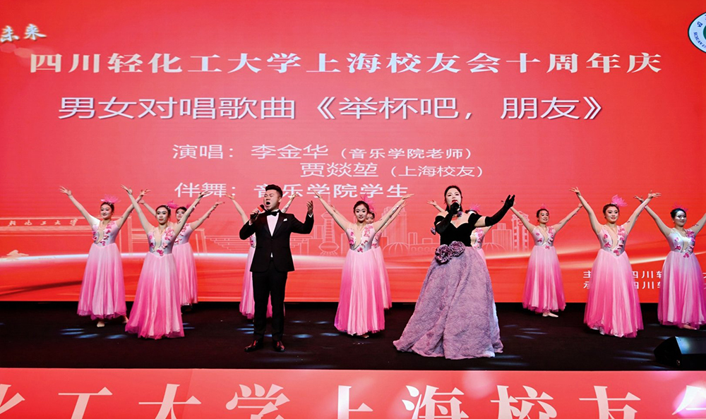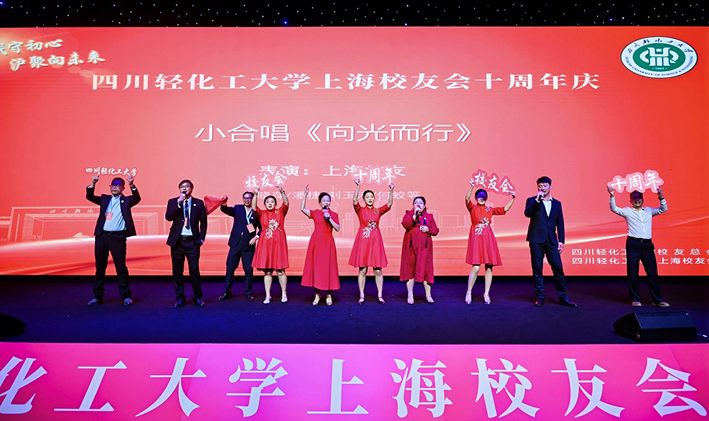 当晚的文艺演出精彩纷呈。音乐学院学子献上开场舞,李金华老师与校友贾燚堃对唱《举杯吧,朋友》。理事会成员的诗朗诵《浦江潮起,十载同行》回顾十年历程,校友小合唱《向光而行》将气氛推向高潮。活动由朱和英、唐石莹、罗丹三位校友主持。