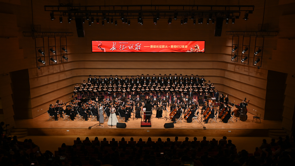 校党委书记张力、党委副书记陈范华等莅临现场,与党员师生代表一同观看演出。本次音乐会以大型声乐套曲《长征组歌》为核心内容,该作品被誉为“音乐中的长征史诗”。演出曲目以《告别》《突破封锁线》《遵义会议放光辉》等十个乐章构建长征的时间与空间脉络,串联起红军告别苏区、突破封锁、遵义转折、四渡赤水、强渡大渡河、会宁大会师的壮阔征程,以音乐的形式描绘出一幅全景式的长征史诗画卷。整场演出通过交响与合唱的立体交融,艺术地再现了中国工农红军艰苦卓绝、气壮山河的伟大征程,展现了中国共产党人坚定的理想信念和百折不挠的革命意志。全体观演党员师生在音乐中回望峥嵘岁月,一同感受信仰力量。