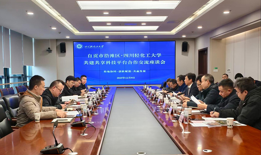 12月9日上午,自贡市沿滩区委副书记、区长赵德本率区政府相关职能部门负责人,莅临我校李白河校区开展合作交流座谈。学校党委常委、副校长罗惠波、相关职能部门及学院负责人参加会议。会议由成果转化中心副主任吴浩主持。