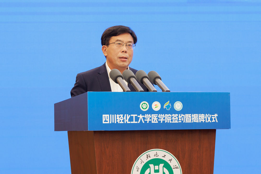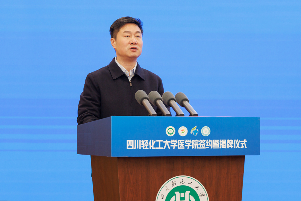 张力代表学校向各位领导、嘉宾表示热烈欢迎,对自贡市委、市政府及各合作方的长期支持致以衷心感谢。张力回顾了学校六十年来扎根自贡、与城同行的办学历程,强调建设医学院既是响应“健康中国”战略、服务国计民生的必然选择,也是破解区域医疗资源瓶颈、助力自贡建设川南区域医疗健康高地的关键举措。围绕医学院建设,张力阐述了三点方向:一是共担医卫使命,服务国家战略,补齐医学教育短板;二是共创协同机制,构建“大学+医院+职院”育人体系,突出“医工融合”,培养复合型人才;三是共建区域高地,立足川南渝西,聚焦精准医学、生物材料、智能装备等前沿,构建“医学+工程+产业”培养体系,让优质医疗惠及更多群众。